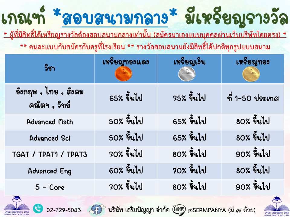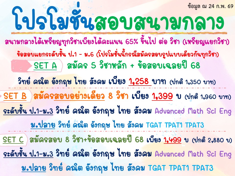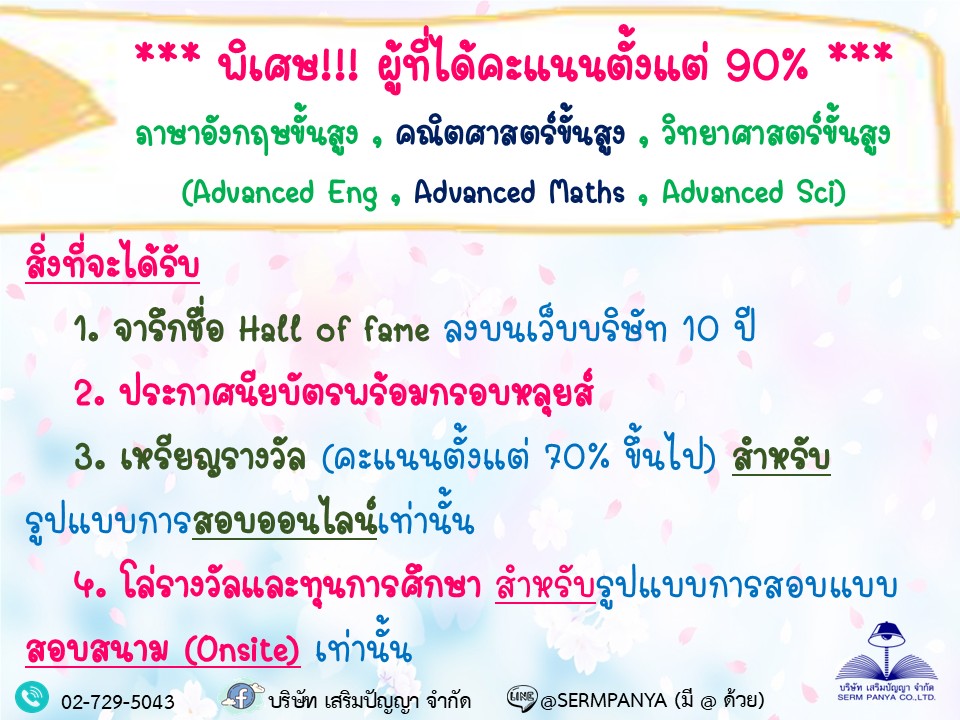 ***วิชา Advanced และTGAT เพิ่มเงิน 60 บาท***