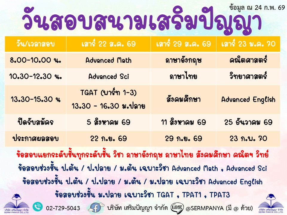 สอบถามรายละเอียดเพิ่มเติมได้ที่ Line : @sermpanya